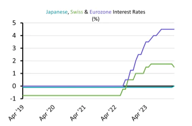 Meanwhile, the Swiss National Bank surprised markets by cutting rates as it reduced its main interest rate from 1.75% to 1.5%. The Swiss experience of inflation has been very different to the rest of western Europe. Inflation peaked at 3.5%, far below the Eurozone, and it dropped to 1.2% in February allowing the SNB to cut rates to help make the Swiss franc more competitive and boost economic growth, which is forecast for 1% this year.