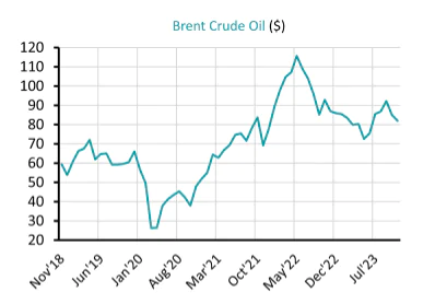 Saudi Arabia has driven this year’s production cuts and recently confirmed it’s production cap will be in place until at least January 2024. However, disagreement over how to share any additional production cuts led to speculation that Saudi may abandon its production limit. The oil price has since regained the losses and it is up slightly this week. The lower price of oil has helped ease global inflation this year and fears that the outbreak of war between Israel and Hamas and the ongoing war in Ukraine would push up oil prices have so far failed to materialise despite an early spike at the beginning of the conflict in Gaza.